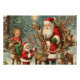 Vintage Santa with Children, Reindeer and Gifts Poster