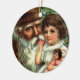 Vintage Sanat ornament featuring Santa holding a little girl who is holding a doll!