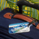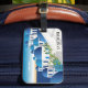 Beautiful Santorini Greece Luggage Tag showing the unique architecture of houses with blue domes and costal view of the greek island. Great Santorini souvenir and gift idea. Makes a travel gift to memorise your vacation in greece. Make it your own and purchase now.