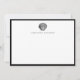 This classic coastal personalised note card features a black border and vintage illustration of a scallop shell. Personalise it with your name in modern sans serif font. A subtle pattern of scallop shells on a black background decorates the reverse.