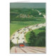 Vintage illustration travel and transportation image featuring a freeway with cars travelling through some green fields in scenic America.