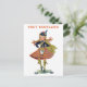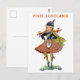 Anyone would love to receive this cute vintage travel postcard featuring a colourful retro illustration of a Scottish woman wearing a traditional kilt costume in Scotland!
