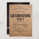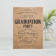 Vintage Scrollwork Graduation Party Invitations on butcher kraft paper background. Minimalist, vintage, formal, fancy, elegant, old-fashioned calligraphy scrollwork.