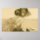 Raphael Kirchner vintage sea girl with pink rose poster. Art nouveau painting from 1901. From Kirchner’s series Girls Between Brown and Green Edges, this beautiful entry features a young woman with a pink rose in her waving dark hair staring out into the ocean. A great gift for fans of Raphael Kirchner, vintage art, art nouveau, and cute seaside prints.