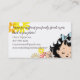 Vintage, retro girl with hair bow and puff sleeve dress sewing a handkerchief on a cute scratchy floral background on these business cards for sewing crafts, seamstress, embroidery or alterations sewing service.