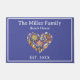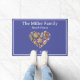Greet friends and family at your vacation home with this beach-themed doormat! Customise with your family or group/club name for the perfect outdoor accessory. This design features nautical colours with a heart-shaped vintage seashell motif.