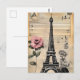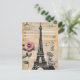 Vintage Sepia Eiffel Tower & Pink Flower Postcard