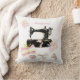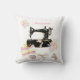A stylish vintage sewing machine design with pretty pale coloured flowers, fabric, threads and buttons all on a white background. The cushion would make a great accessory to any sewing room or sewing area. Great to give as a gift to those who love to sew and quilt.. The name can be amended to personalise the pillow.