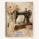 An antique sewing machine surrounded by soft roses, buttons, and vintage paper elements. Warm neutral tones and delicate floral details create a nostalgic sewing and craft themed composition.
