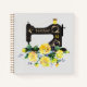 Sewing themed notebook with your choice of paper styles inside. Pretty front and back cover pattern in a black vintage style sewing machine accented with your chosen monogram and a lavish bouquet of yellow pastel flowers. Just edit the monogram.