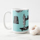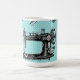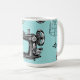 Great vintage images of an antique sewing machine, wire dress form, thread, scissors, thimble and button against a pastel aqua subtly polka dot background create this fun and nostalgic design, perfect for a seamstress, tailor, dressmaker or lover of vintage items. Choose your mug style, including a travel mug. This design is also available on an iPhone case, laptop sleeve and more in my Zazzle store.