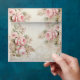 The wedding invitation envelope exudes vintage charm with its shabby chic design, featuring delicate pink hues and watercolor floral motifs. Its elegant yet trendy appearance strikes a perfect balance between modern aesthetics and timeless grace, making it an exquisite introduction to a memorable celebration.
