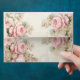 The wedding invitation envelope exudes vintage charm with its shabby chic design, featuring delicate pink hues and watercolor floral motifs. Its elegant yet trendy appearance strikes a perfect balance between modern aesthetics and timeless grace, making it an exquisite introduction to a memorable celebration.
