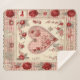 Vintage Shabby Chic Rose Heart Gingham Sherpa Blanket