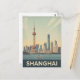 This stylish card features a vintage-style illustration of the iconic Shanghai skyline. The design captures the majestic Oriental Pearl Tower and the modern skyscrapers of the Pudong district, all from across the Huangpu River. The soft, muted colour palette and retro typography give it the feel of a classic travel poster, perfect for a note from your travels or a gift for a city lover.
