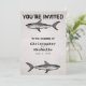 Vintage Shark Beach Wedding Invitations in Shades of Black, White and Grey.