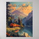 The image captures the beauty of nature as a mother bear and her two cubs look on.
