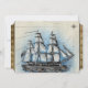 Explorers ahoy! This nautical wedding invitation features a vintage ship (a frigate) under full sail against a parchment and blue background. Antique, whimsical, and altogether a charming option for boat, sea, or adventure themed weddings.
