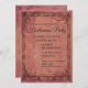 Vintage-look invitation with an antique border on a purplish background with a vintage skeleton in a graveyard and bat.