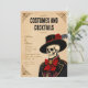 This unique invitation perfectly blends classic elegance with a delightfully spooky charm. Featuring a dapper skeleton in a distinguished top hat and a vibrant red bow tie, it promises an event that's both stylish and spirited. The rich, aged parchment background and the bold, vintage-inspired lettering for "COSTUMES AND COCKTAILS" set an intriguing tone, while the elegant script details hint at an unforgettable gathering.