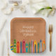 These paper plates are perfect for your winter or skiing themed event. They feature my hand-drawn illustrations of vintage skis. The bright color skis are set against a brown graphic that's meant to look like the wood siding on a ski lodge. These paper plates are ready to be personalized with your custom text.