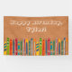 Celebrate avid skiers with this custom party banner. The banner features my colorful hand-drawn illustrations of vintage skis set against a light brown background that mimics the look of wood siding. Your custom message appears above the retro ski graphics.