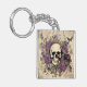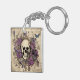 Vintage Skull and Purple Flowers Key Ring