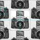 A pattern with a repeating high contrast vintage camera motif. Creating a strong bold toothy retro screen print or mediaeval Gothic brass rubbing like effect. This pattern can also be customised in a variety of ways.