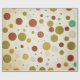 Pretty holiday or winter wrapping paper features a vintage white background with polka dots in various sizes in red, olive, off white, gold, and teal with snowflakes scattered here and there!