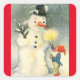 Vintage Snowman And Elf Square Sticker