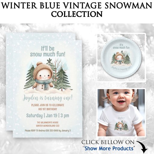 Vintage Snowman Blue Winter 1st Birthday Banner