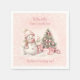 Vintage Snowman Girl Pink Christmas 1st Birthday Napkin