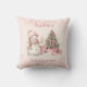 Vintage Snowman Girl Pink First Christmas Pillow