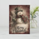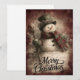 Send timeless holiday cheer with this beautifully illustrated Christmas card featuring a classic snowman dressed in a green top hat adorned with holly and a red-and-green plaid scarf. Holding a decorative staff with floral accents, the snowman stands against a sepia-toned background with faint cursive script and gently falling snowflakes. The elegant “Merry Christmas” message in black cursive adds a refined touch to this warm, vintage-inspired winter scene.