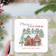 Vintage Snowy Cottage Custom Merry Christmas Square Sticker