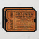 Realistic vintage Halloween Birthday party ticket Invitation, features clipped corners, dark orange weathered background with spider web graphic image, in a faux ticket style. customise with your party info. Makes a great, unique invite, styled to resemble a real admission ticket, this bold and fun invite is great for a party at any age! Back contains orange aged design with spider web and black bats.