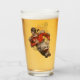 Easy to customise Football Beverage Glass, just add your name! Vintage illustration sports football design featuring a player and dog playing a game. The quarterback has the ball and is running past the team bulldog mascot and the initials HP to make a touchdown.