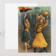 Vintage illustration sports design featuring women's basketball players. The girls have the letter "P" on their uniforms.