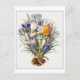 This postcard is a reproduction of a vintage illustration showing spring crocuses.