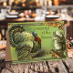 Embrace the charm of vintage Thanksgiving greetings with this delightful holiday card featuring a nostalgic illustration of a turkey and a squirrel against a vibrant green background. The whimsical scene captures the essence of the season, with "Greetings of the Season" adding a warm touch to the design. Ideal for those who appreciate classic Thanksgiving art, this card is perfect for sending heartfelt wishes to loved ones.