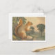 This postcard is a reproduction of a vintage lithograph showing a squirrel in the forest.