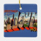 A vintage postcard greeting from Missouri repurposed on an ornament. Keep the image on the back or remove it and add your personal message.