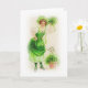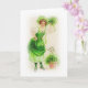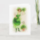 Image of a vintage St Patrick's Day card. Young Irish Woman with Shamrocks and March 17 calendar.