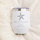 These elegant minimalist wine tumblers make great bridal party gifts or destination wedding favours. Clean minimal design features your names, wedding date, and location in classic black serif lettering. A vintage style starfish illustration in black completes the design.