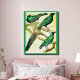 This glossy poster features a vintage illustration of four different birds on one single page 1 green glossy starling (Lainprocolius chalybeus) 2 Malabar mynah 3. purple-headed glossy starling 4 long-tailed glossy starlings. The original image was published in the book "The illustrated book of canaries and cage-birds, British and foreign." Year: 1878. Great for bird lovers' homes in an ornithologist's office .