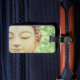 Keep your inner peace during your travels with this rendering of a Buddha with the Ohm symbol on it's forehead against a green leafy background. Customisable text on the back for further identification.