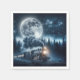 A vintage steam locomotive chugs along a track under a vast, starry sky with a massive full moon illuminating the scene