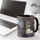 A dark industrial design mug with either these steam train images or your own photos. Great for his birthday or Father's Day for instance.