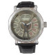 This watch features a print of an engine order telegraph (E.O.T.) or chadburn from the SS Rotterdam, The Netherlands. Nice "steampunk" imagery.