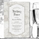 A rustic pale grey carved stone birthday dinner celebration invitation.